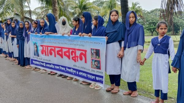 শিক্ষার্থী লামিয়া হত্যাকারীদের বিচারের দাবিতে সহপাঠীদের মানববন্ধন ও বিক্ষোভ মিছিল